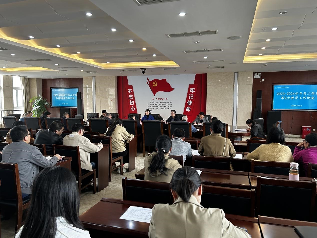4月8日下午,2023-2024学年第2学期第2次教学工作例会在明德楼1301会议室召开。学院党委委员、副院长杨桦,各教学系(部、院)主任、副主任,教研室主任、教学干事,教务处相关人员参加会议。会议由教务处负责人主持。