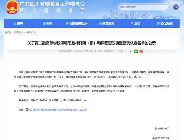自2023年首批认定以来,学院在课程思政建设领域共认定省级课程思政标杆院(系)2个、省级课程思政典型案例2项。这不仅标志着学院教育教学改革的进一步深入探索,更是课程思政改革的重要教育教学成果。学院通过构建特色育人体系、深化专业与思政融合、推进教研改革等举措,实现了知识传授与价值引领的同频共振,为学生成长成才奠定了坚实基础。