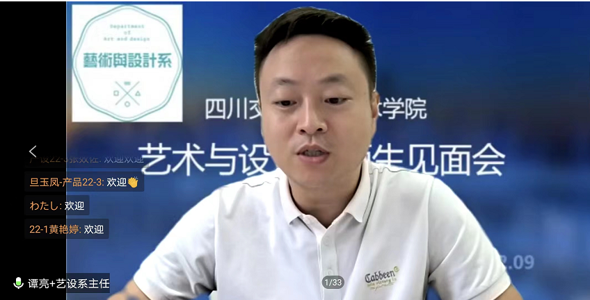 2022年9月15日9点,艺术与设计系2022级师生见面会在腾讯会议举行,系领导班子成员、系办公室主任、系团总支书记、各干事、新生班辅导员及2022级313名新生参加了本次线上见面会。活动由系党总支副书记谭静主持。