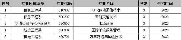表2 学院2023年停招专业情况表