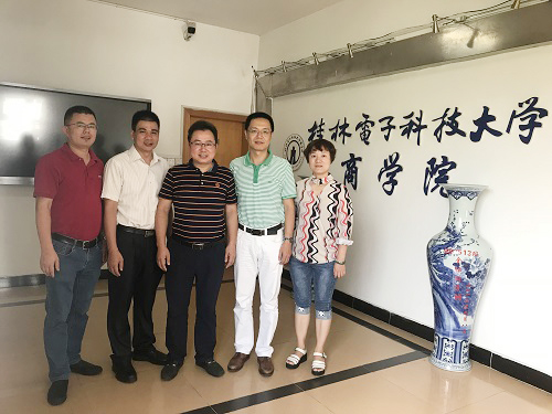 2018年9月20日,贝博艾弗森代言体育官网信息工程系负责人林勇一行三人赴桂林电子科技大学商学院(下面简称桂电)进行了调研。桂电商学院副院长李立成教授,院长助理花均南介绍了桂电商学院近年来的商科数字化转型之路,并重点介绍了桂电成立数字经济学院和数字经济研究院的相关情况。林勇教授简要介绍了贝博艾弗森代言体育官网的办学历史并提出将数字技术和信息技术与商科专业相结合的思路。双方一致同意学科发展要走校企合作和产教深度融合的道路,约定今后在专业建设、师资培训、人才培养等各方面加强交流与合作。
