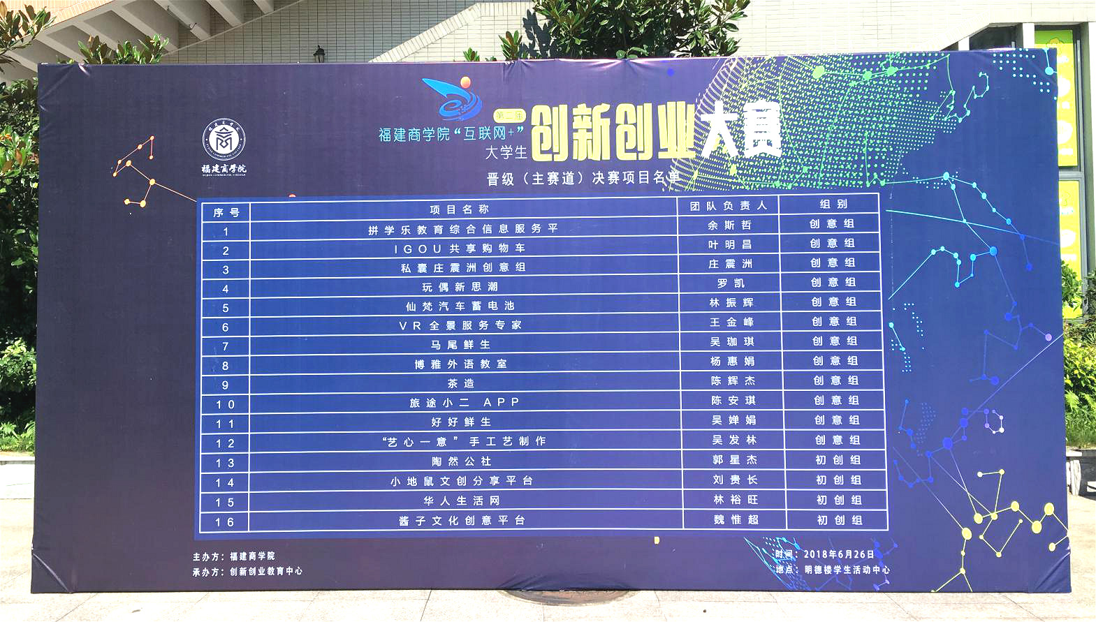 2018年6月26日下午,贝博官网“互联网+”大学生创新创业大赛决赛在连江校区大学生活动中心举行。创新创业大赛是学校开展双创教育的实践平台,也是践行“立德树人”的重要活动载体。我系在赛前通过广泛动员,本着全员参与的态度,圆满完成100个项目申报指标。其中“奇境幻想”幻想团队的“VR全景服务专家”项目通过激烈角逐,荣获本届大赛校赛铜奖,这也是我系成立以来第一次摘得此类赛事校赛奖项。